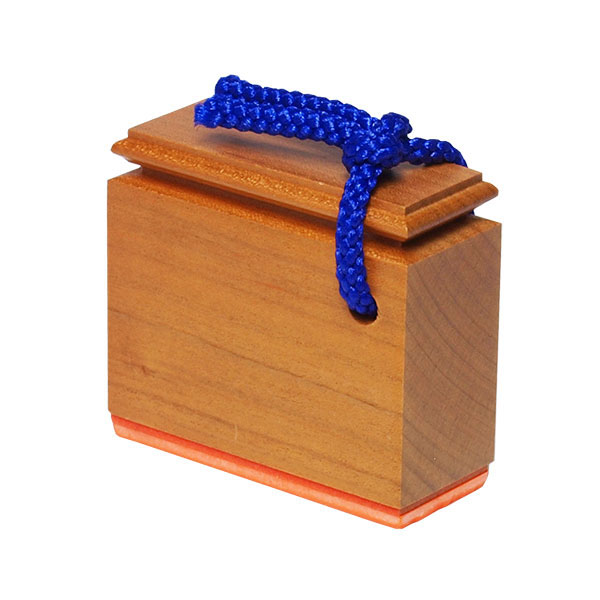 ![]() 台木は天然無垢材。 アクセントに和風の ひもを付けています。 印面部分