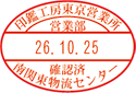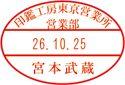 ![]() 印面部分 ←緑の部分が日付部分です。オレンジ色の部分がオーダーメイドになります。 ※写真は丸型です