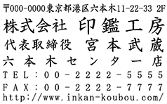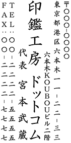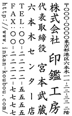 | 横書きの住所印・社判・横判・小切手印としてはもちろん、縦書きでもお作りすることが可能です。 | |