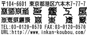 会社の住所印の書体としては、明朝体を始めとした読み易く安心感のある書体が人気です。 分割印・親子判などで代表者名の部分を行書体にするのも人気です。 |